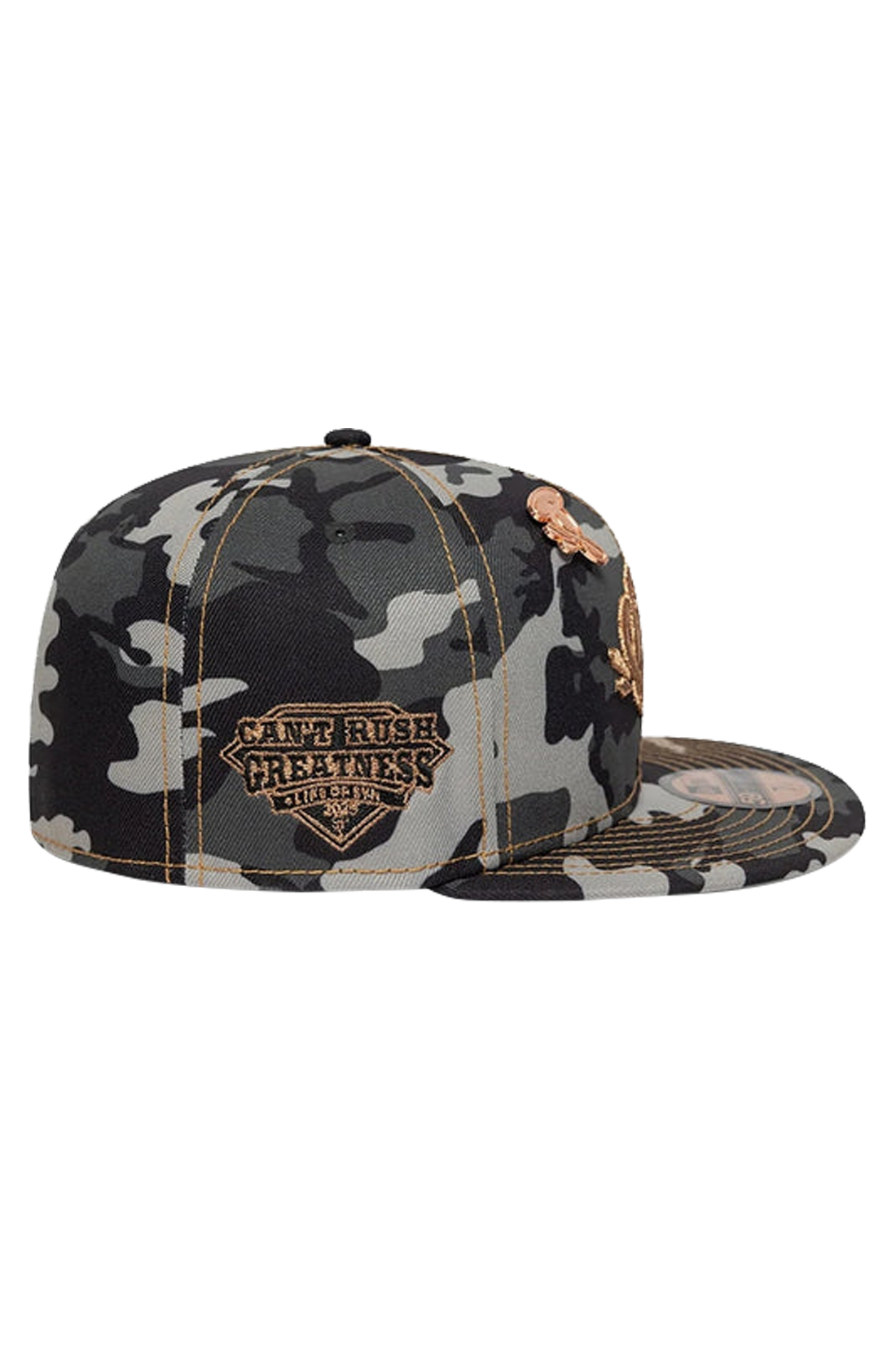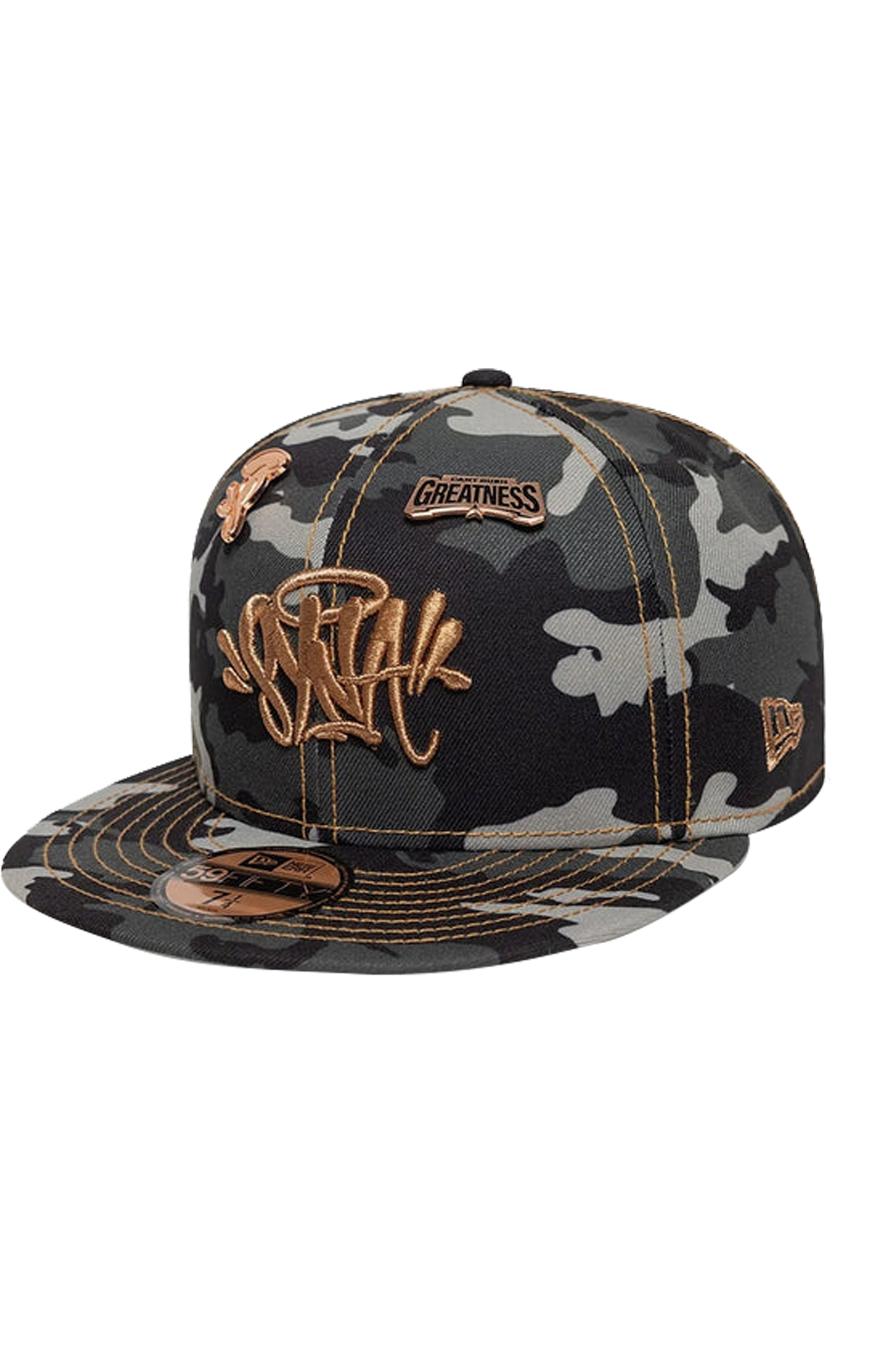 Elevate your streetwear game with the Central Cee x New Era Syna 59FIFTY Fitted Camo Hat. This exclusive cap features a bold black camo design complemented by eye-catching rose gold embroidery. Combining iconic New Era craftsmanship with Central Cee’s signature Syna World aesthetic, this fitted cap is a stylish and standout piece for any wardrobe.